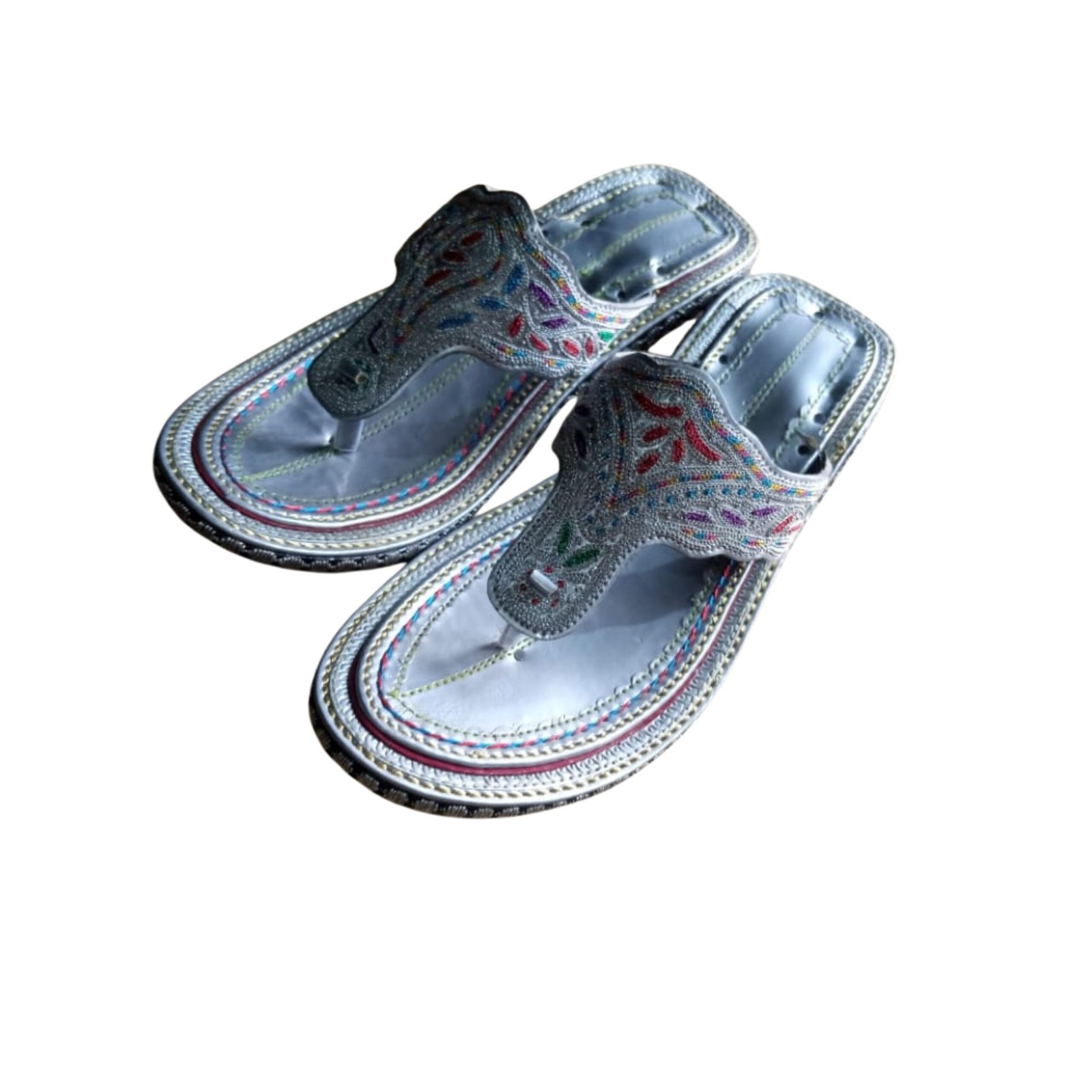 Elegant and traditional handcrafted Kolhapuri sandals featuring intricate embroidery and durable leather sole, perfect for ethnic and casual wear.
